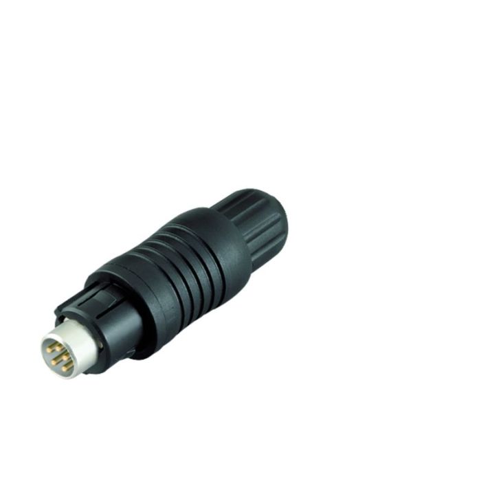 Kabelkontakt serie 430 han med 4 poler. 3 A, IP67. Tilkobling 0.25 mm² lodding. Hus av Polyamid (PA/lon), Kontaktmateriale CuZn(Sn)+Au, Maksimal kabeldiameter: 5 mm . Minsteantall og pris oppgitt pr. 10 stk.