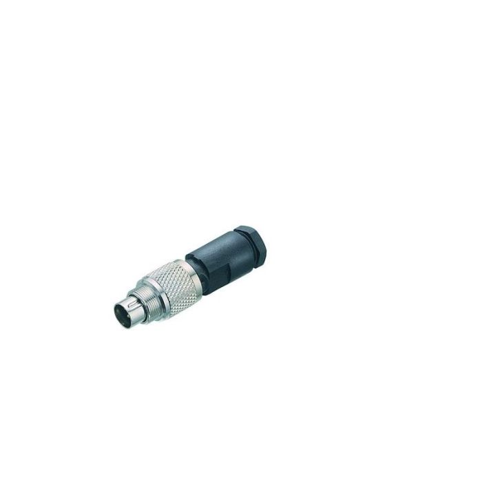 Kabelkontakt serie 712 han med 4 poler. 3 A, IP67. Tilkobling 0.25 mm² lodding. Hus av PBT (UL 94 V-0), Kontaktmateriale CuZn+Au, Maksimal kabeldiameter: 5 mm . Minsteantall og pris oppgitt pr. 10 stk.