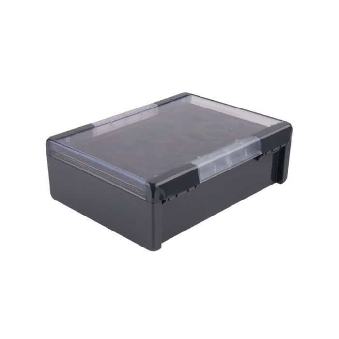 B 273612 PC, grafitt grå, tilsvarende RAL 7024, med krystallklart lokk, Dimensjon:364X284X122